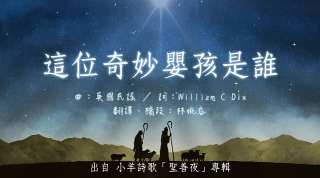 這奇妙嬰孩是誰/天使歌聲 詞:William C Dix 曲:英國民謠 - 這位奇妙嬰孩是誰 馬利亞懷中安睡 夜半天使歌聲甜美 歡迎祂降臨人間 看 看 基督我王 牧人讚美 天使頌揚 來 來 屈膝敬拜 至聖嬰孩新生王 這位奇妙嬰孩是誰 馬利亞懷中安睡 看似貧賤 看似卑微 萬有主當受敬畏 看 看 基督我王 牧人讚美 天使頌揚 來 來 屈膝敬拜 至聖嬰孩新生王 哈利路亞 高高在上和散那 獻上黃金 沒藥 乳香 不論尊卑齊仰望 道成肉身 帶來救恩 萬心當尊祂為王 看 看 基督我王 牧人讚美 天使頌揚 來 來 屈膝敬拜 至聖嬰孩新生王 哈利路亞 高高在上和散那 -